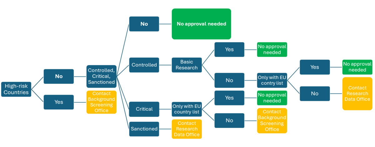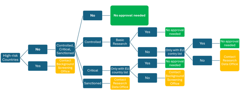 Beslutningstræet giver dig også information om, i hvilke tilfælde du skal kontakte henholdvis ‘The Background Screening Office’ og ‘The Research Data Office’.